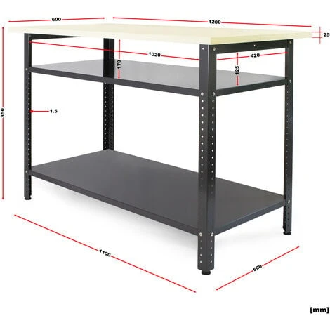 Établi atelier 120x60x85cm Plan travail Table emballage Rangement