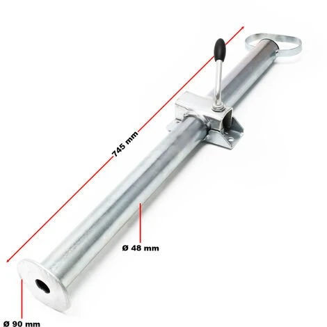 | Dimensions | Diamètre du tube : 48 mm Longueur totale avec poignée : 755mm Longueur totale sans poignée : 700 mm Diamètre de la plaque de base : 90 mm Pinces de serrage : |