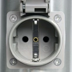 L’indice de protection IP55 confère à la multiprise une grande résistance à la pluie, aux éclaboussures et jets d’eau. Plus besoin de la démonter après l’usage ou par mauvais temps. Par ailleurs, la colonne est équipée de quatre prises au total, dont le raccordement au réseau reste efficacement protégé par un couvercle à charnière.
