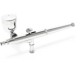 Cet aĂ©rographe professionnel ne s’adresse pas seulement aux utilisateurs professionnels. Le modèle est livrĂ© avec trois buses (d’un diamètre de 0,2 / 0,3 / 0,5 mm) et convient donc aussi aux peintures ou laques aux pigments grossiers. Grâce aux godets Ă peinture de dimensions diffĂ©rentes d’une contenance de 7 et 20 ml cet aĂ©rographe convient aussi bien Ă d’amples travaux qu’Ă des travaux avec de de petites quantitĂ©s de peinture. Le rĂ©glage du mĂ©lange peinture/air se fait par la fonction de rĂ©gulation double ou Double-Action. La quantitĂ© de passage de peinture peut ĂŞtre rĂ©glĂ©e par la vis au bout du manche.