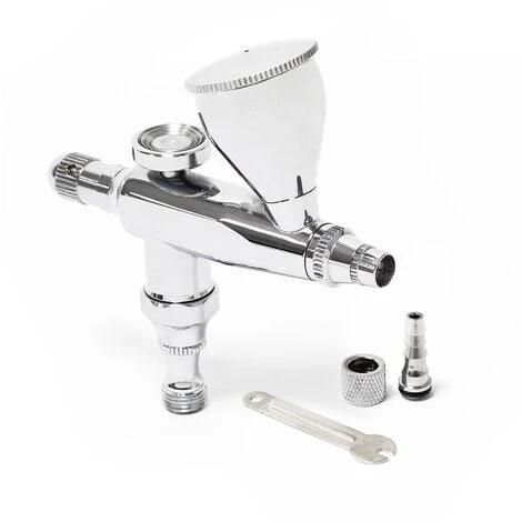Cet aĂ©rographe professionnel ne s’adresse pas seulement aux utilisateurs professionnels. Le modèle est livrĂ© avec une buse (d’un diamètre de 0,30 mm) et convient donc aussi aux peintures ou laques aux pigments grossiers. Grâce au godet d’une contenance de 5 ml il convient tout particulièrement aux travaux avec de petites ou moyennes quantitĂ©s de peinture. Le rĂ©glage du mĂ©lange peinture/air se fait par un type de rĂ©gulation simple (Simple Action Function). Le passage de quantitĂ© de peinture voulue peut ĂŞtre rĂ©glĂ© par une vis au bout de la poignĂ©e.
