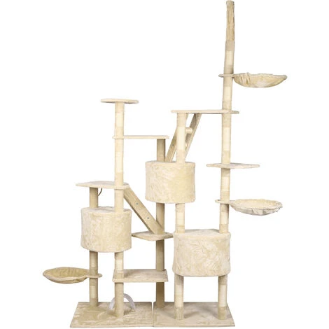 Arbre à chat 230-260cm Beige Niches Hamacs & Échelle Tissu Sisal
