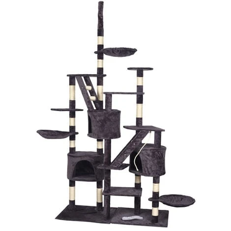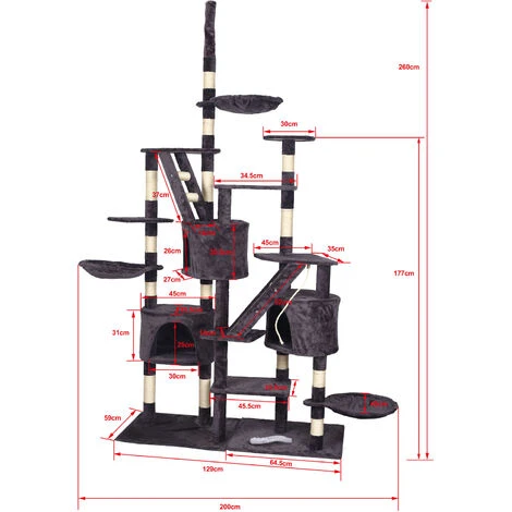Arbre à chat 230-260cm Gris Niches Hamacs & Échelle Tissu Sisal