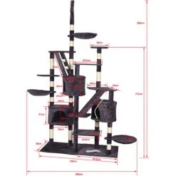Nous vous proposons un arbre à chat de couleur grise pour égayer la vie de votre petit compagnon. Il s’agit un arbre à chat réglable en hauteur de 230 à 260 cm offre au minou toutes sortes de possibilités : plusieurs endroits pour dormir, plusieurs retraites pour se détendre, différentes activités ludiques et en même temps l’occasion parfaite pour aiguiser ses griffes. L’arbre est donc parfait pour les foyers comptant plusieurs chats.