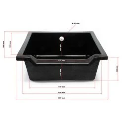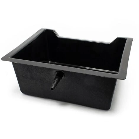 Le bac est fabriqué en matière plastique renforcée de fibre de verre de 3 mm d’épaisseur et donc pratiquement inusable. L’embout pour tuyau faisant partie de la livraison, addition d’oxygène inclus, dirige l’eau qui entre vers le bas et garantit en même temps un enrichissement de votre eau en oxygène.