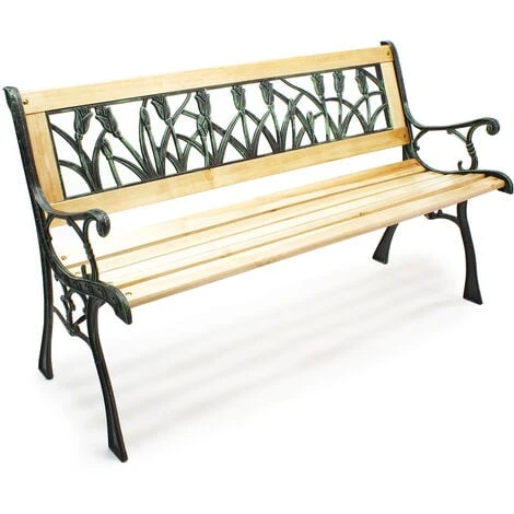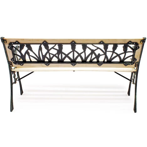 Banc de jardin Ulrike Bois et Fer de fonte Dossier avec Design Tulipes