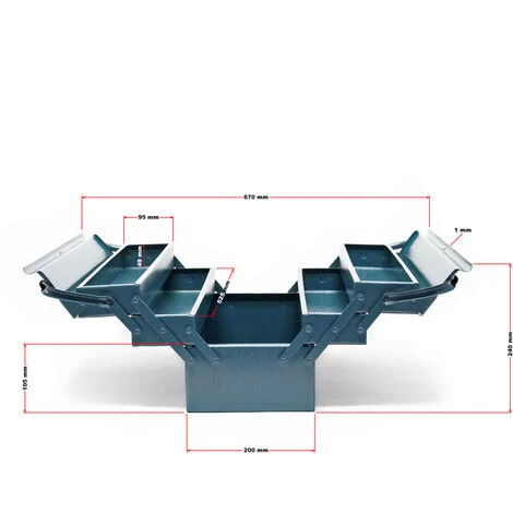 Boite à outils Acier 530 x 200 x 200mm avec 5 Compartiments et Poignée