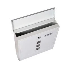 Une boite aux lettres en acier affiné en blanc, avec un espace généreux pour y accueillir vos lettres, un compartiment pour les journaux et une fenêtre de visualisation pour que vous y placiez vos plaques d’identité. De taille importante et verrouillable, la boite aux lettres peut être également utilisée par les entreprises et sociétés. Les grandes lettres peuvent être introduites par la large fente, sans encourir le risque d’être pliée ou se mouiller ou se déformer suite à des averses ou un vent fort, si elles restent à moitié à l’extérieur. L’ouverture de retrait est conçue de sorte à vous permettre de retirer le courrier sans l’endommager.
