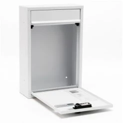 | Application / Information / Caractéristiques | Large fente de boite aux lettres avec porte-nom avec serrure à combinaison Revêtement par poudre robuste Boite aux lettres au montage simple |