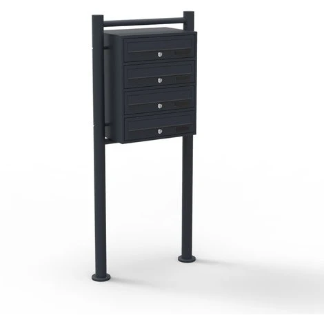 | Application / Information / Caractéristiques | Large fente de boite aux lettres 4 Boite aux lettres avec porte-nom 2 clés par compartiment Avec un pied de support pratique Revêtement par poudre robuste Boite aux lettres au montage simple |