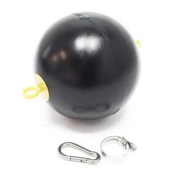 Une boule de flotteur est en plastique polyéthylène dur (PEHD) avec un œillet soudé en acier inoxydable. La boule d’un diamètre de 155 mm sert de flotteur et maintient le niveau d’aspiration juste en dessous de la surface de l’eau. Ceci permet d’éviter que l’eau sale et les impuretés comme le sable ou la boue ne soient aspirées par le fond du réservoir d’eau. Le filtre grossier d’aspiration avec clapet anti-retour est fixé à l’œillet de retenue à l’aide du crochet de fixation fourni.