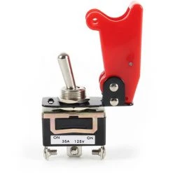 Relevez le capuchon du bouton d’arrĂŞt et le bouton est dĂ©verrouillĂ©. Faites alors fonctionner l’interrupteur Ă bascule qui Ă©tait cachĂ© jusqu’alors.