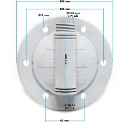 La bride est dotée d’un filetage mâle d’un diamètre de 1 pouce (32,89 mm) et d’un filetage femelle d’un diamètre de ⅜ pouce (16,41 mm). La bride est une pièce de rechange qui convient aux réservoirs à vessie de 24-100 litres. Conçue en plastique, elle est stable et durable.