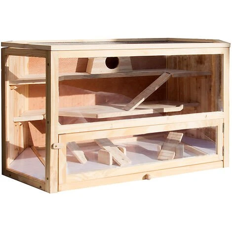 | Application / Information / Caractéristiques | Matériel: bois, fenêtre en acrylique, grillage 1 cage pour rongeurs avec trois étages matériel de montage inclus |