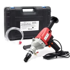 La carotteuse permet de réaliser des résultats de forage très précis, sans formation de poussière. Cet outil est particulièrement apprécié pour sa précision et la simplicité de son utilisation. Grâce au puissant moteur de 2080 watts, l’appareil atteint jusqu’à 1700 tours par minute, que vous pouvez régler en continu selon vos besoins. La perceuse est également équipée d’un porte-outil de 31,75 mm (1¼ pouce -7 UNC) filetage extérieur. Le diamètre de forage est compris entre 12 et 110 mm.