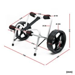 Pour que rien ne s’oppose à la prochaine excursion en kayak, canoë ou petit bateau, ce chariot léger et robuste va vous accompagner dans vos sorties afin de vous faciliter la tâche de transport. Le chariot est composé d’une construction en aluminium anodisé de haute qualité avec des tubes de 20 mm. Les deux grandes roues en polyuréthane (PU) permettent, grâce à leur diamètre de 26 cm (10″), de tirer et de pousser confortablement le canoë et autres.