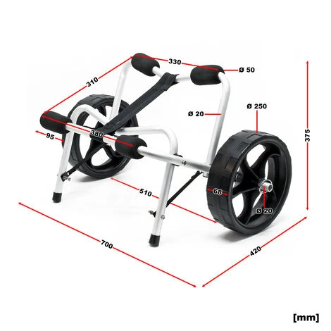 Chariot de transport Kayak Alu Pliable 68kg Roues PU & Sangles Nylon