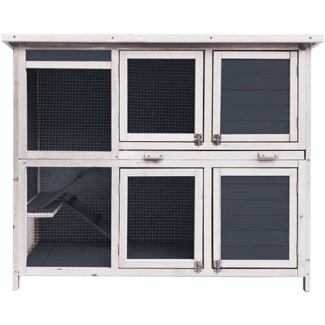 Clapier Ă deux niveaux et avec escalier, sol retirable, gris