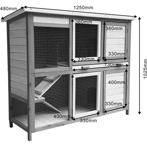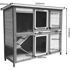 Pour garantir aux lapins, aux lièvres et aux cochons d’Inde un entretien conforme à leurs besoins, il doit y avoir l’espace nécessaire. Car les animaux ont besoin de se bouger chaque jour et de pouvoir se retirer pour s’abriter en toute sécurité là où ils sont protégés contre des ennemis et les intempéries Ce clapier est équipé de deux niveaux et peut compléter la détention de petits animaux à côté d’un grand enclos.
