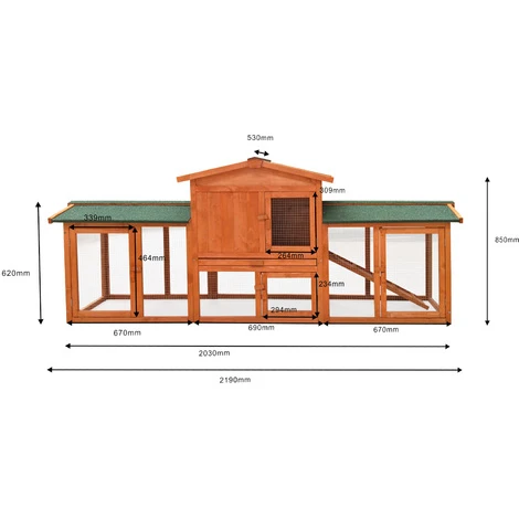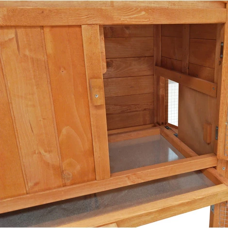 Pour garantir aux lapins, aux lièvres et aux cochons d’Inde un entretien conforme à leurs besoins, il doit y avoir l’espace nécessaire pour se bouger et pour s’abriter en tout sécurité là où les animaux sont protégés contre des ennemis et les intempéries. Ce clapier fabriqué en bois d’épicéa est équipé de deux niveaux et peut compléter la détention de petits animaux à côté d’un grand enclos.