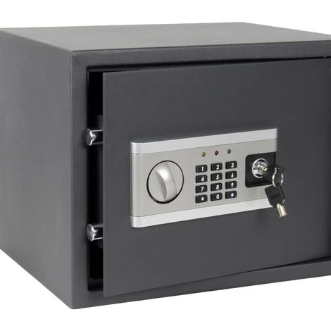Le coffre-fort électronique est le lieu par excellence pour garder vos documents de valeur, vos bijoux ou votre argent comptant. Car il est équipé d’un verrouillage à double boulon qui ferme de manière sûre la porte en acier. Le coffre-fort ne s’ouvre qu’après que vous avez saisi la combinaison numérique que vous aviez programmée. Au cas où un mauvais code aurait été saisi trois fois d’affilée ou que l’on aurait essayé d’ouvrir le coffre-fort d’une autre manière, l’alarme intégrée sera déclenchée. Au cas où vous ne vous rappelleriez plus le bon code, servez-vous de l’une des deux clés incluses dans le contenu de la livraison pour une ouverture d’urgence du coffre-fort.