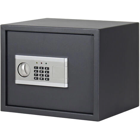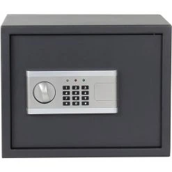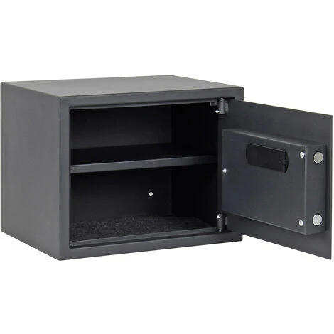Le coffre-fort, d’une taille de 380 × 300 × 300 mm (LoxLaxHa), reprend vos documents importants ainsi que vos objets de valeur. Les parois du coffre-fort ont une épaisseur de 1,5 mm, le matériau de la porte est d’une épaisseur de 4 mm. Grâce aux trous pilotes, le coffre-fort peut se monter au mur ou au sol.