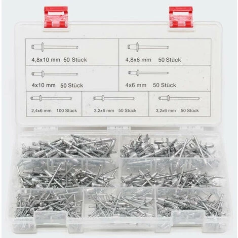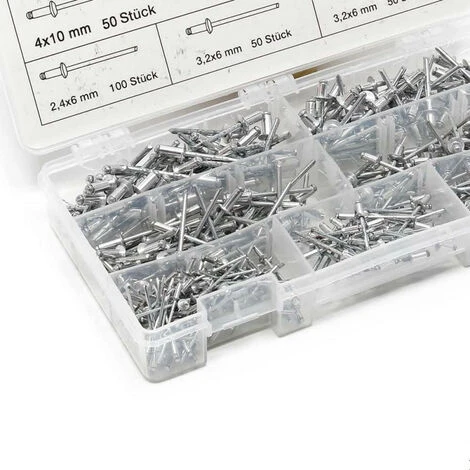Ensemble de rivets aveugles ou pop en aluminium de 2.4 Ă 4.8 mm – 400 pièces.