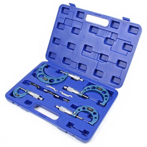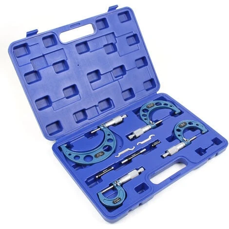 Le kit couvre une plage de mesure qui va de 0 jusqu’à 100 mm, Ă savoir que le dit set contient quatre micromètres aves les plages de mesure suivantes : 0 – 25 mm, 25 – 50 mm, 50 – 75 mm et 75 – 100 mm. Ces micromètres dĂ©tiennent une prĂ©cision de mesure de 0,001 mm. Par consĂ©quent, ils reprĂ©sentent l’outil idĂ©al pour des mesures visant un Ă©talonnage prĂ©cis.