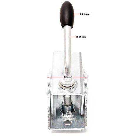 Vous pouvez encastrer votre roue ou soutien dans cette bride et en régler la hauteur en continu en débloquant la bride, ce qui se fait sans avoir besoin d’outils à l’aide de la poignée caoutchoutée. L’usage est simple, la roue de support se serre dans la bride et se règle en hauteur en continu, seul le support doit être desserré. Desserrer la bride s’effectue via la poignée caoutchoutée sans avoir recours à aucun outil.