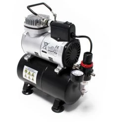 La solution intelligente: l’appareil idéal et de grande performance pour tous les travaux de pulvérisation et d’airbrush pour débutants ou pour professionnels à utiliser dans le modélisme, la céramique, la poterie, la cosmétique, les casques, les reproductions techniques,le tanning, le tatouage, le textile, les ateliers NailArt, les travaux de peinture à eau ou de simple pulvérisation. Facile à transporter et de poids léger. Très silencieux avec 47 décibels seulement. Le compresseur est totalement automatique et pratiquement sans vibrations. Il fonctionne sans huile et donc sans air pollué. Avec filtre à eau, régulateur d’air comprimé et manomètre.