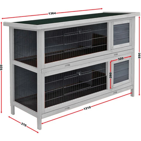 Double cabane en gris à lapins ou à petits rongeurs à deux étages