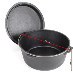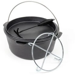 Une marmite Dutsch Oven en fonte avec couvercle assorti reprĂ©sente l’ustensile parfait pour la cuisine en plein air. Que ce soit sur un foyer permanent, un feu de camp ou un espace barbecue, la marmite d’une capacitĂ© de 10 litres vous permet d’étendre la prĂ©paration des aliments en plein air au-delĂ du barbecue normal. Pour un support sĂ»r, le faittout Dutch Oven est dotĂ© de pieds afin qu’il tienne Ă©galement de manière stable sur des surfaces inĂ©gales.