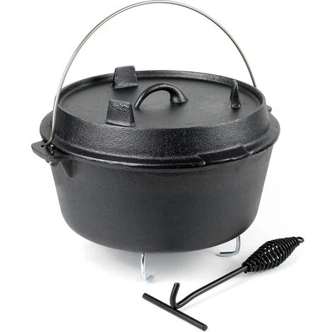 Dutch Oven Marmite 12L Dessous-plat Lève-couvercle Fait-tout Fonte