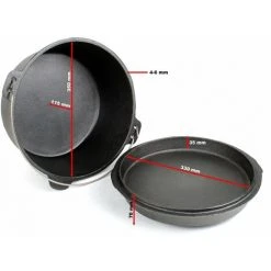 Une marmite Dutsch Oven en fonte avec couvercle assorti reprĂ©sente l’ustensile parfait pour la cuisine en plein air. Que ce soit sur un foyer permanent, un feu de camp ou un espace barbecue, la marmite d’une capacitĂ© de 12 litres vous permet d’étendre la prĂ©paration des aliments en plein air au-delĂ du barbecue normal. Pour un support sĂ»r, le faittout Dutch Oven est dotĂ© de pieds afin qu’il tienne Ă©galement de manière stable sur des surfaces inĂ©gales.