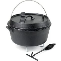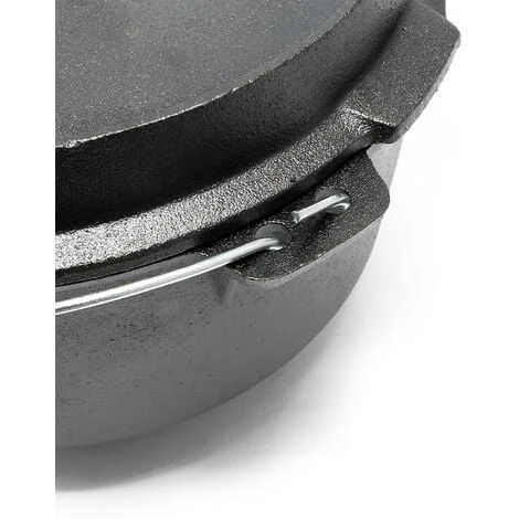 Une marmite Dutsch Oven en fonte avec couvercle assorti reprĂ©sente l’ustensile parfait pour la cuisine en plein air. Que ce soit sur un foyer permanent, un feu de camp ou un espace barbecue, la marmite d’une capacitĂ© de 18 litres vous permet d’étendre la prĂ©paration des aliments en plein air au-delĂ du barbecue normal. Pour un support sĂ»r, le faittout Dutch Oven est dotĂ© de pieds afin qu’il tienne Ă©galement de manière stable sur des surfaces inĂ©gales.