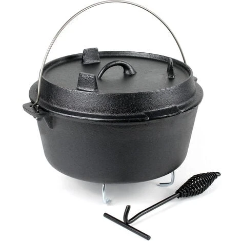 Dutch Oven Marmite 18L Dessous-plat Lève-couvercle Fait-tout Fonte