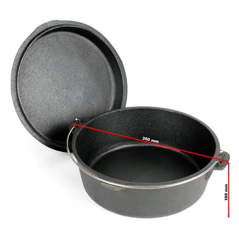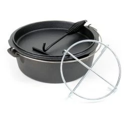 Une marmite Dutsch Oven en fonte avec couvercle assorti reprĂ©sente l’ustensile parfait pour la cuisine en plein air. Que ce soit sur un foyer permanent, un feu de camp ou un espace barbecue, la marmite d’une capacitĂ© de 8 litres vous permet d’étendre la prĂ©paration des aliments en plein air au-delĂ du barbecue normal. Pour un support sĂ»r, le faittout Dutch Oven est dotĂ© de pieds afin qu’il tienne Ă©galement de manière stable sur des surfaces inĂ©gales.