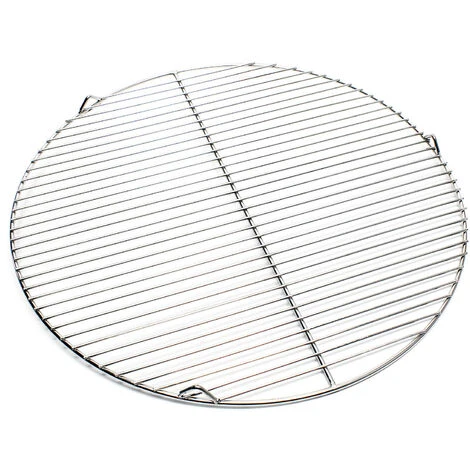 La grille de barbecue ronde et massive a un diamètre de 55 cm, Matériau : acier inoxydable, sans rouille, avec surface polie. La grande surface vous permet la préparation de plusieurs mets à la fois.