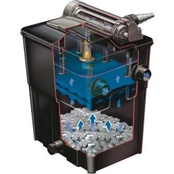 Ensemble complet de filtre pour bassins jusqu’à 12000 litres, composé d’un Ecopower Plus 12000 et d’une pompe à filtre et cascade Aquaforce 3500. L’Ecopower Plus 12000 est un éco-filtre facile à nettoyer et à entretenir avec une lampe UVC intégrée. Le filtre de bassin de jardin Hozelock Cyprio Ecopower+ élimine les solides indésirables du bassin et convertit les déchets de poisson organiques et chimiques dissous en composés inoffensifs.
