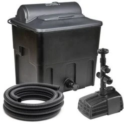 Jeu complet de filtres pour bassins jusqu’à 8000 litres (poisson étangs 4000 litres) consistant en un Ecopower PLUS 8000, une pompe d’alimentation de 1 500 litres par heure, de 5 mètres Ø 25 mm tuyau d’étang et de colliers. Ecopower Plus 8000 est un facile à nettoyer et maintenir le flux avec filtre de bassin UVC intégré plus propre. Ce filtre peut au bord de l’étang ou dans la partie supérieure d’un cours de cascade ou un ruisseau. Il traverse la pompe saleté est appelée pour un excellent premier nettoyage dans le coussinet de mousse maille fine par le bas du filtre et l’eau filtrée à la biomedia. L’Ecopower plus la série comporte l’unique biomedia Kaldnes, ce qui rend pour une surface de très grand attachement et un changement continu des bactéries. Ces bactéries sont nécessaires pour les particules de saleté nuisible à décomposer et convertir les documents utiles pour l’étang.L’UVC intégré filtre dispose d’une lampe 8 Watt UV « eau verte », en raison de zweefalg. Le résultat est un excellent effet de nettoyage et pas seulement un brillant, mais aussi un étang très sain.