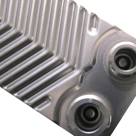 L’Ă©changeur Ă plaques est un type d’Ă©changeur de chaleur qu’on pourrait aussi nommer transmetteur de chaleur. Comme le dit son nom, il est composĂ© d’un grand nombre de plaques imprimĂ©es en forme de vagues ondulĂ©es, reliĂ©es les unes aux autres d’une facon très particulière. Entre les plaques on trouve des espaces intermĂ©diaires oĂą circulent le fluide absorbant la chaleur et le fluide transmettant la chaleur. L’appareil peut ĂŞtre Ă©tanchĂ©ifiĂ© de facon diffĂ©rente pour Ă©viter la fuite de fluides vers l’extĂ©rieur et empĂŞcher les fluides de se mĂ©langer Ă l’intĂ©rieur. Certains Ă©changeurs sont vissĂ©s ce qui leur donne l’avantage de pouvoir ĂŞtre agrandis en ajoutant des plaques.