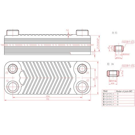 | Matériau des plaques / Matériau des raccords | Inox AISI 304 |