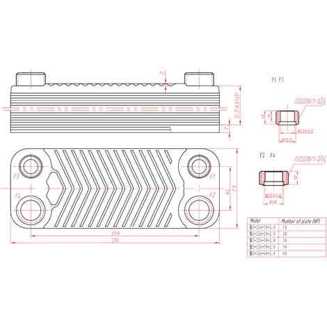 | Matériau des plaques / Matériau des raccords | Inox AISI 304 |