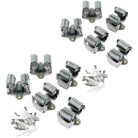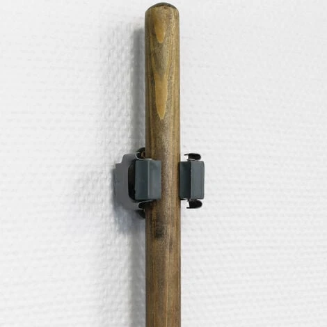 Les supports en acier de haute qualité et d‘application universelle, se fixent au mur à l‘aide de 2 vis seulement et sont compatibles avec la plupart des manches de différents outils de nettoyage ou de jardinage, qui ont une norme standard maximale de 5 cm. L‘outil s‘accroche rapidement, il suffit de l‘encliqueter dans le support, ne nécessite aucune autre forme de fixation et reste ainsi à porté de la main.