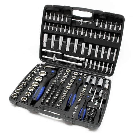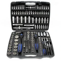 | Application / Information / CaractĂ©ristiques | Jeu de clĂ©s Ă douille de 172 pièces FabriquĂ© en acier au carbone durci Douilles avec de 1/2″, 1/4″ et 3/8″ Inclusive les Rallonges LivrĂ© une boĂ®te Ă outils |