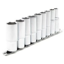 Assortiment de douilles longues et mĂ©triques 6 pans de 10 Ă 24 mm – 9 pièces.