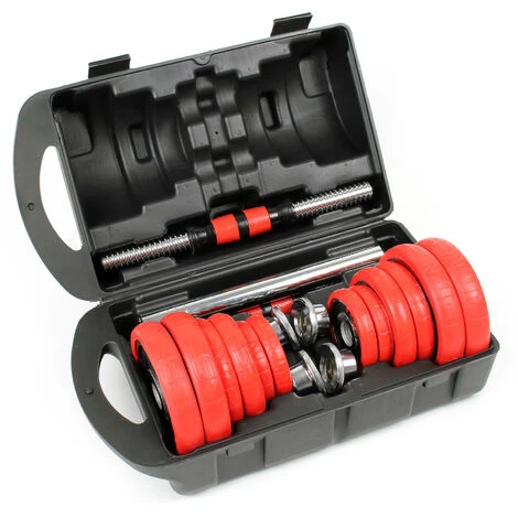 Kit d’haltères Courts & Longs 20kg Set 2en1 avec 12 Plaques de poids