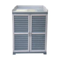 L’armoire de jardin de conception intelligente, est munie d’une surface large à votre hauteur et de deux étagères en dessous. Par ailleurs, le meuble repose sur quatre pieds en bois, de sorte qu’il n’y ait pas de contact direct avec le sol, empêchant par ce biais, la pénétration de l’humidité par-dessous. En effet, la plaque de surface est de taille généreuse, pour que vous puissiez vous consacrer en tout confort à divers travaux. Les parois et le face arrière du panneau sont dotées d’une bande de protection pour éviter les chutes éventuelles de vos objets.