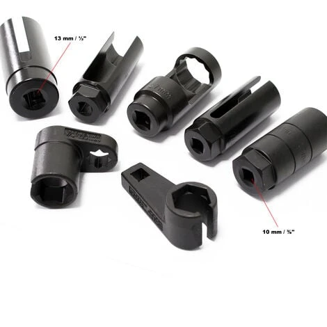 Toutes les clés à pipe du set à sondes lambda injecteurs sont fabriquées en acier au chrome vanadium de plus haute qualité et noir fini.