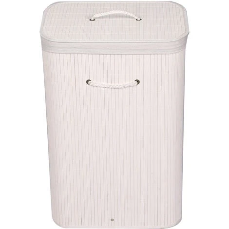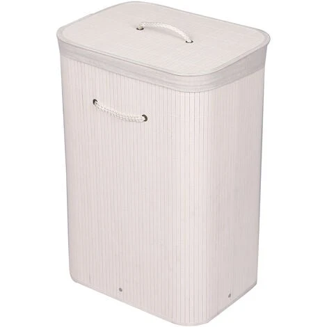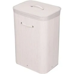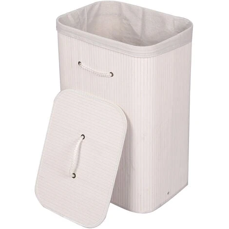 Panier Ă linge Bambou 72L Blanc Sac Ă linge Angulaire Pliable